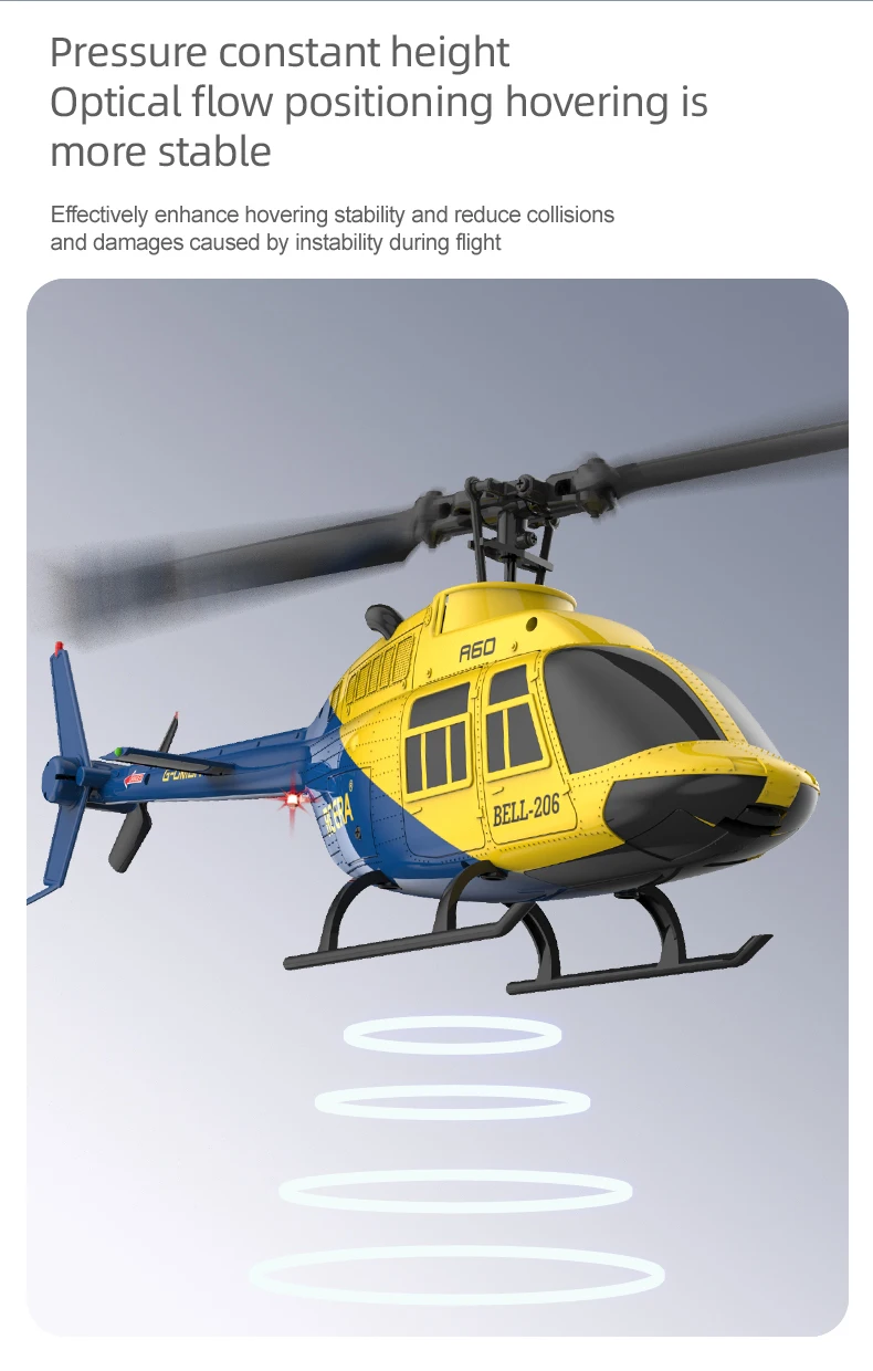 ¡El diseño sin flybar, de un solo hélice, el giroscopio electrónico de 6 ejes para estabilización y el barómetro para control de altitud brindan un vuelo más estable y un control más fácil!¡Tiempo de vuelo ultralargo!¡Resistente a impactos!A medida del tamaño de un avión real, se puede utilizar tanto para control de vuelo como como adorno decorativo.¡El A60 cuenta con un tiempo de vuelo de aproximadamente 12 minutos!