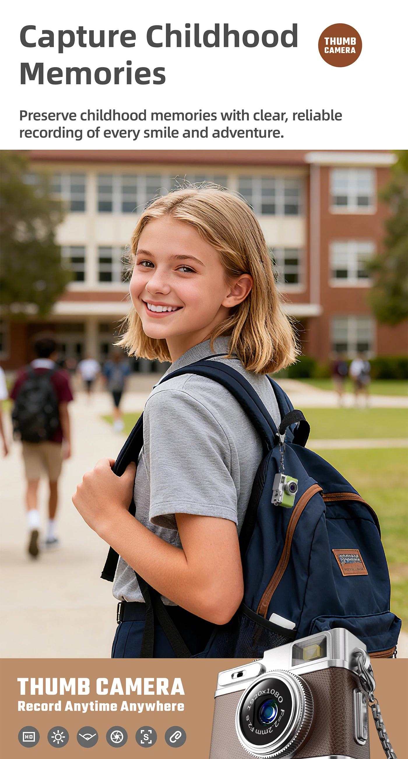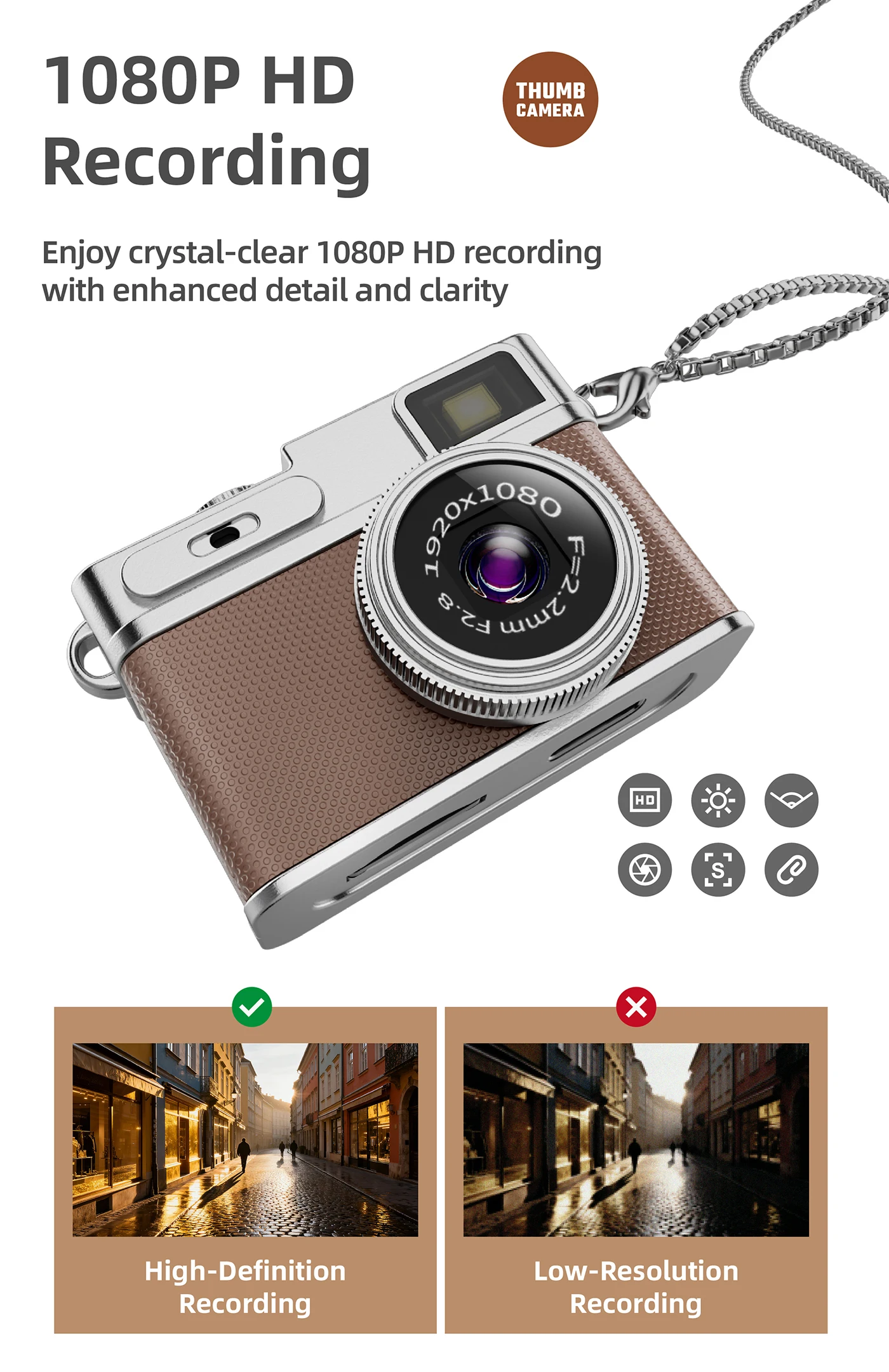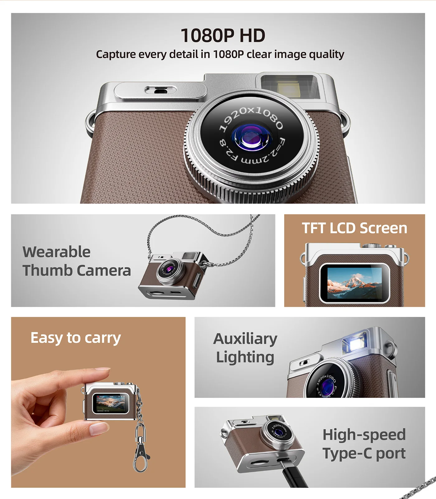 El diseño retro de esta mini cámara agrega un toque vintage a sus fotografías de viajes al aire libre.